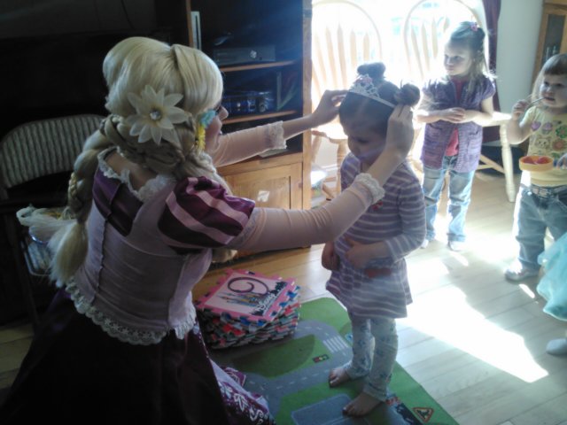 | The birthday girl, Avery, got Rapunzel hair from her aunt so she got to be just like Rapunzel. |